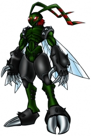 有著人型的形態,非常稀有的昆蟲型數碼寶貝。有著昆蟲型特有的堅硬外骨骼以及迅速的速度。就暗殺者的能力來說很優秀,敏捷的身手跟確實的判斷力可攻擊到敵方的弱點,擅長一擊就讓對手倒下的攻擊。